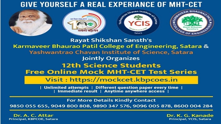 3) Dear Students Welcome to our Mock JEE-Main CET Portal, Rayat Shikshan Sanstha's KBPCOE & YCIS Satara jointly organized Online MOCK CET TEST SERIES in view of Covid-19 situation.